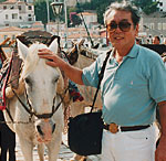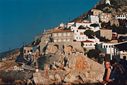 最後は映画「イルカに乗った少年」の舞台にもなったイドラ島である。島のあちらこちらにブーゲンビリアの花が咲きみだれ、その鮮やかな紅色そしてエーゲ海の青さ、建物の白さはまさにギリシャにいるんだとい思いを満喫させてくれた。商魂たくましい土産物屋の店主が私たち日本人を呼び込む…そのしつこさに思わず財布のひもをかたくした。それとは対照的に人なつっこく顔を寄せてくるロバが可愛らしい。迷っていたが、思い切って乗った。狭い路地を上がり下りしながら少し奥へ入るとまたもやブーゲンビリアが美しく、あちこちから野良猫達が顔を出している。