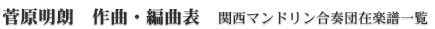 菅原明朗(本名・吉治郎)は1897(明治30)年3月20日、兵庫県明石に生れた。1913(大正2)年、兵庫県の柏原中学校(現・県立柏原高等学校)を経て京都府立第二中学校(現・府立鳥羽高等学校)に転校。府立二中では吹奏楽隊に入り、大阪の陸軍第四師団軍楽隊から派遣されてきていた小畠賢八郎らからフランス式のソルフェージュや管楽器の手ほどきを受けた。府立二中を終え、上京して川端画学校に入り、藤島武二のもとで油絵を学んでいたが、1915(大正4)年、中学校時代の友人、野村光一につれられ大田黒元雄を訪れ、大田黒を中心としたサロンに参加した。ここで堀内敬三、二見孝平らと知り合い、初めての作品「三つの音詩」(1915)を作曲した。大田黒が創刊した月刊誌「音楽と文学」の同人となったがこのサロンの中で明朗はドビュッシーなどのフランス音楽に強く引かれていった。また武井守成らが創刊したシンフォニア・マンドリーニ・オルケストラ(1923年からOST)に参加してマンドロンチェロ、アルチキタルラ、アイリッシュ・ハーブ等を演奏した。やがて堀内敬三から基礎的技法の不足を指摘されたことを契機として1919年から1925年まで奈良の上高畑に引きこもった。奈良では、リムスキー・コルサコフ、ヴァンサン・ダンディ等の理論書を読んで翻訳し、マンドリンを中心とした楽器とその音楽の研究に没頭したが、楽器の特性を十分に把握したオーケストレーションの妙はこの時代に培われたものである。1922(大正11)年からは音楽生活に専念し、「Quasi Valse」、「真昼の行列」などの初期の代表的な作品を産み出すほか、バロックから古典派までの様々な曲をマンドリン合奏のために編曲し、同志社大学、OST等を指揮してプレクトラム合奏の技術向上にも大きな貢献を果した。特筆すべきことは、ドビュッシー、キューイ、サティ、プーランク、オーリック、オッネゲル、ミヨー、フェルー等のフランスの近・現代音楽やバルトーク、ストラヴィンスキーなどの音楽をプレクトラム合奏用に編曲し、OSTの演奏会を通して一般に紹介したことである。 1925(昭和元)年12月、武井に乞われて再び上京し作曲、編曲、指揮など多彩な音楽活動を再開した。1930(昭和5)年には帝国音楽学校作曲科主任教授に就任(1933年には解任)、新興作曲家連盟の旗揚げに参加(1933年には脱退)した。この時期、明朗に教えを受けた人々には、深井史郎、古関祐而、小倉朗、箕作秋吉、山本直忠、服部正ら、その後、作曲界で活躍した錚々たる人材がいる。1930年代は明朗の第一期黄金期であって、奈良時代に訳したリムスキー・コルサコフの『和声学要義』の翻訳書、『楽器図説』(その後『楽器図鑑』)、『管弦楽法 上・下』の相次ぐ刊行、「内燃機関」、「祭典物語」、「明石海峡」、「神仙調協奏曲」、「白鳳之歌」、永井荷風との交友から成立したオペラ「葛飾情話」、宮城道雄らと新日本音楽運動に参加している人々との交友と琴尺八などを使った一連の作品群、OSTや新交響楽団等などの指揮、「藤十郎の恋」等の映画音楽や放送音楽の作曲等など、様々な分野で意欲的に活躍した。 1938(昭和13)年の「葛飾情話」の作曲上演を契機として永井荷風と親交を深めていたが1945(昭和20)年には、荷風と共に戦災に遭い、明石、岡山に逃れる。岡山で「玉音放送」を聞き帰京するが、それから各地を転々とする厳しい生活の中で、キリスト教典礼、グレゴリオ聖歌、ラテン語を学び、およそ4年の歳月を費やして「聖譚楽 預言書」を書き上げた。また戦後の音楽教育の新訂に際して、全国各地の音楽教師のために開かれた講習会の講師として活躍する傍ら、リード音楽等の教育楽器を通した、新音楽教育の普及のために奔走した。 1963(昭和38)年の関西マンドリン合奏団の川口優和との出会いが再び明朗のマンドリン音楽への関心を呼び覚まし、その後も多くのマンドリン作品の作曲と編曲を残している。また1963(昭和38)年にはカトリックに改宗し、本格的な宗教曲が多いことも我国の作曲家としては異色である。1966(昭和41)年、70歳の頃、明朗は初めてのヨーロッパ旅行をした。この旅行は明朗に大きな影響を与え、ヨーロッパの文化や、古い建造物との出会いが、明朗の奈良時代の古い記憶を呼び覚ましたかのように『芸術新潮』誌上にイタリアの美術や奈良の仏教美術をテーマとした多くのエッセーを執筆し連載する。またヨーロッパ旅行は明朗の創作意欲にも新たな息吹を吹き込み、70歳から91歳での死に到るまでの作品の数は、それ以前の作品数を上回る。 1988(昭和63)年4月2日、カンタータ「ヨハネの黙示録」の作曲中に逝去。享年91歳。